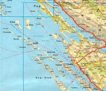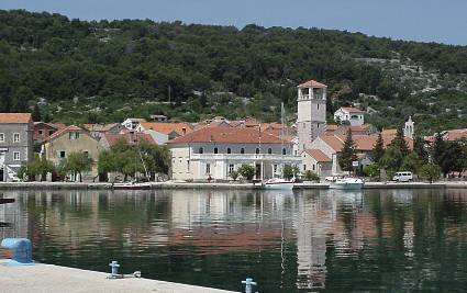 The island of Iž has been inhabited since prehistoric times. At only about twelve kilometers (less than eight miles) long, it is said that Iž supports 78,000 olive trees and 100 hectares (a hectar is 10,000 square meters) of woodland. That's more than a million square yards. This village, I Veli (big Iž) has a ferry to the mainland and a marina. This picture shows most of it. Iž Mali (little Iž) is the older of the two settlements. According to a woman we met in Biograd, life in her hometown on Iž hasn't been the same since the ferry began. Now there's even a pizzeria. |