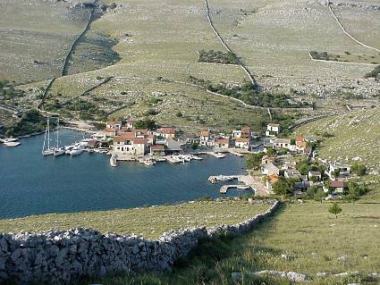 This settlement, called Vrulje, is inside Kornati Islands National Park. We anchored in the harbor one evening and took a path that gave us a fine view of the settlement. |