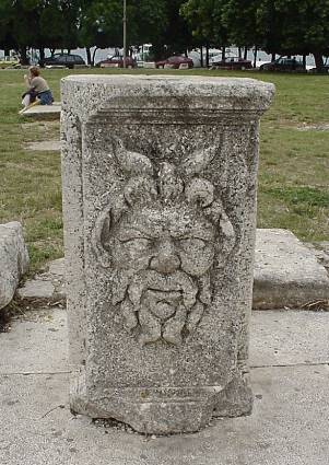 There has been a settlement at Zadar since the ninth century BC. The town became Roman in the first century BC, and the layout of the streets in the old town remains as it was during the Roman era. Europe has so many ancient artifacts that places like Zadar can simply leave them in plain view, like this fragment alongside the old Roman forum. People take their history so for granted that they use blocks like this as benches or places to lean against and chat. We visited an Internet café that was improving its basement. About ten years ago, the previous owner was trying to create a basement shelter, and discovered a stone alcove and a mosaic on the floor that local archaeologists dated to the sixth century BC. |