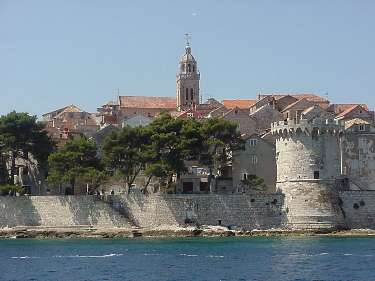 Korčula is the name of an island and the main town on the island, just outside the Pelješac peninsula. Well-protected by its city walls, legend holds that Korčula was founded by a Trojan, in some accounts by the mythical hero Aeneas, but not substantiated by archaeological evidence. Walls have existed since the thirteenth century, but the current city was not built until the fifteenth century. The layout of the old town conforms to the shape of the small protrusion of land on which it sits. The streets are in a fishbone shape, curved or straight to take advantage of shade all day or cool winds. |