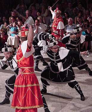 The Moreška has been performed in Korčula since the fifteenth century. Once performed all over the Mediterranean—and possibly originating in Spain—the chivalric dance tells the story of two kings competing for a beautiful princess. The fight involves about a dozen pairs of Red and Black knights, each with two swords, paired off in an extremely well-timed and graceful display of swordsmanship. There are seven dances (or battles), each with a distinct choreography. Originally only performed once a year, there are now two performances per week for tourists to enjoy. |