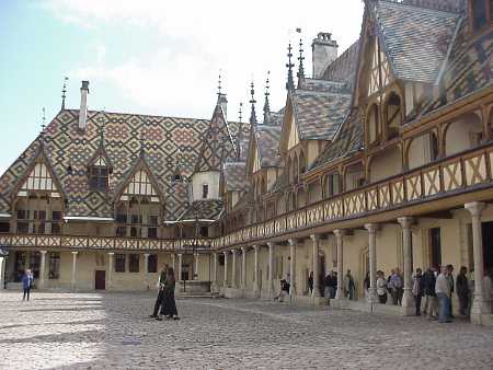 The Hôtel-Dieu, or Hospices de Beaune Hospital, is among the foremost attractions of Beaune. In 1443, a philanthropist built this hospital to house the poor and ill. The endowment provided not only care, but glorious artwork and a religious base. The chapel is integral to the dormitory, so that patients could take part in services without leaving their beds. The first patients entered the hospice in December 1451; the last left in 1971. It remains in use as a retirement home, partly supported by its own vineyards and a world-famous annual wine auction. |