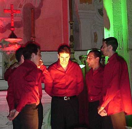 Les Polyphonies Corse, or polyphonic choral singing, is abundant on the island. The harmonic chanting began as a form of expression for shepherds and now represents an important element of Corsican culture. Generally, the music is performed a cappella (without musical accompaniment.) We were introduced to polyphonic singing at the wine festival, so we decided to see an entire concert, also performed in a church, when we visited St-Florent later. The songs are emotional and searing. Sometimes it seems that the music is being channeled through the singers, they concentrate so hard. The acoustics of the church created a powerful resonance, vibrating through the building. |