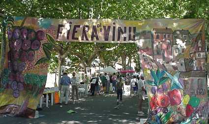 Corsicans speak their own language, usually described as a dialect of Italian. The Corsican-language sign at left marks the entrance to a wine festival we visited, in the inland town of Luri. Notice the word vinu for wine instead of the French vin. Some Corsican wine regions have earned the appellation d'origine contrôlée designation of quality. Dozens of vintners were on hand, pouring glasses of their wines to anyone who wanted to taste them. There were other Corsican delicacies to taste at the festival, such as the local sweet cheese brocciu, honey flavored with the local scrub called maquis, chestnuts from the Castagniccia region, and many more. Musical groups provided entertainment all day, with a checkers tournament and a horse show. |